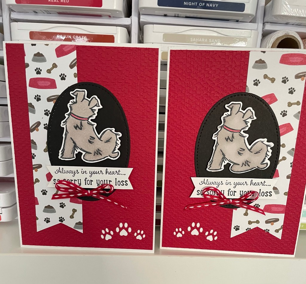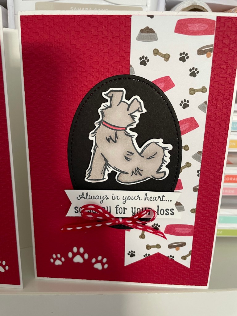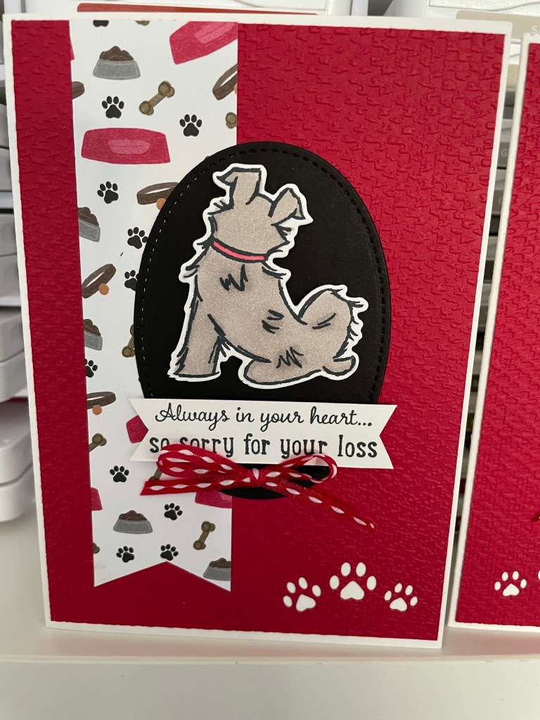 This lovely little pet sympathy card was cased of YouTube by ‘Too Cool Stamping with Angie Leach’.