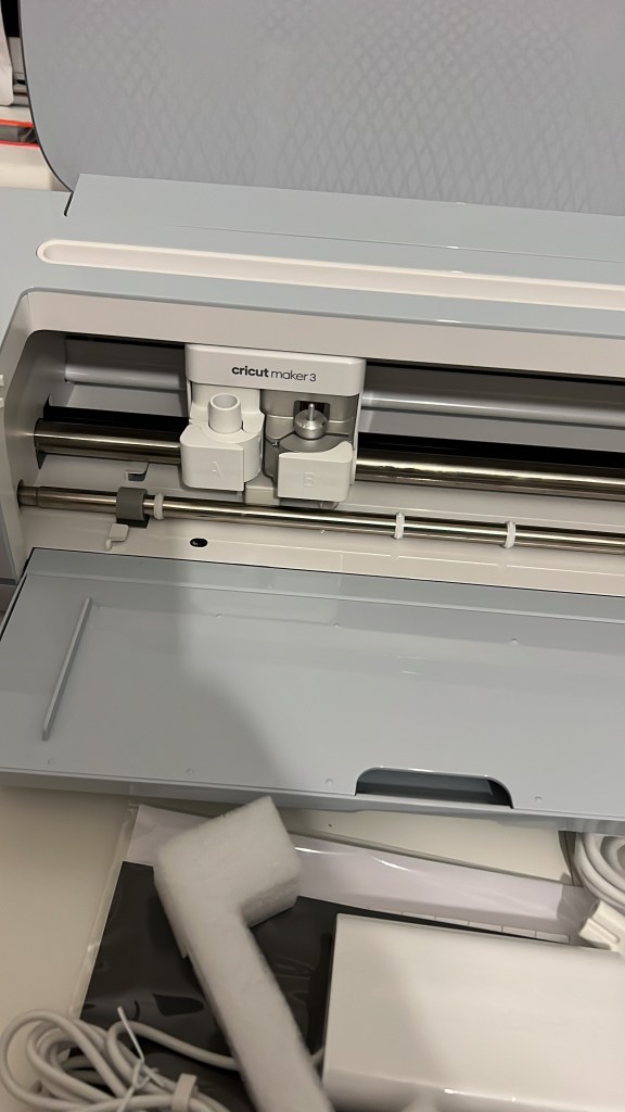 Recently my niece (who has the maker) sat down with me and showed me how to use it properly, since then I’ve grew in confidence and use my air 2 at least once a week now, making things for the family, I had mentioned the new maker 3 to Tony but honestly didn’t think anything of our conversation until Saturday when the delivery guy said, “Christmas has come early”. I opened the box straight away and got the maker 3 connected to design space and made my very first iron on item.