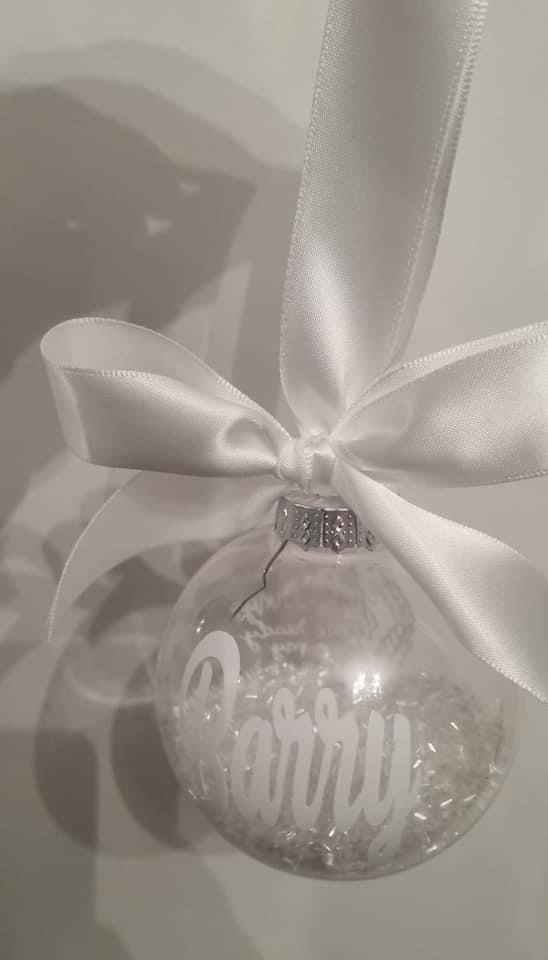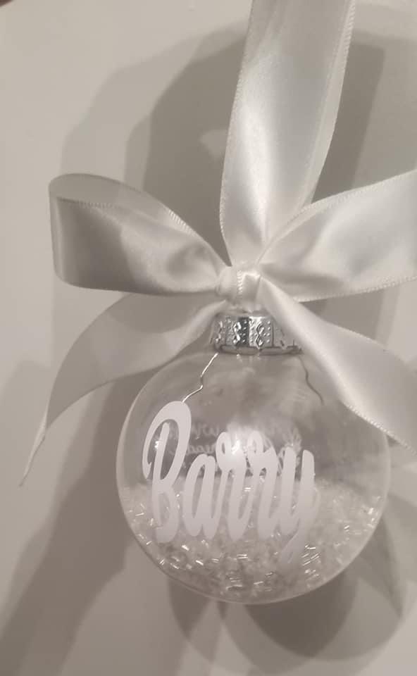 Bought some lovely little Christmas baubles and wanted to decorate them to give as gifts, I made this one for my best buddy Brendan for his birthday in memory of his ‘brother’ Barry
