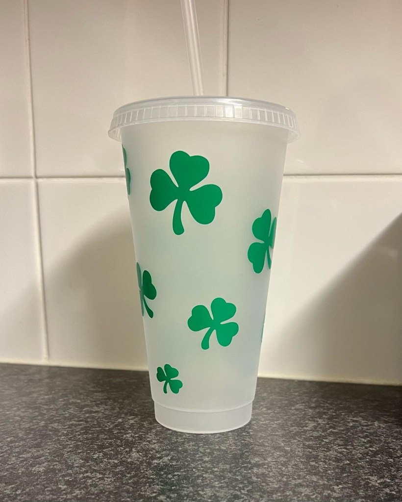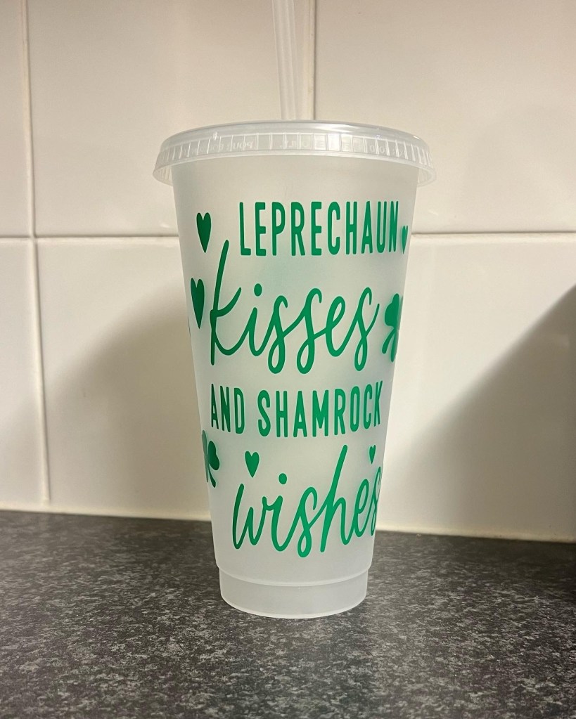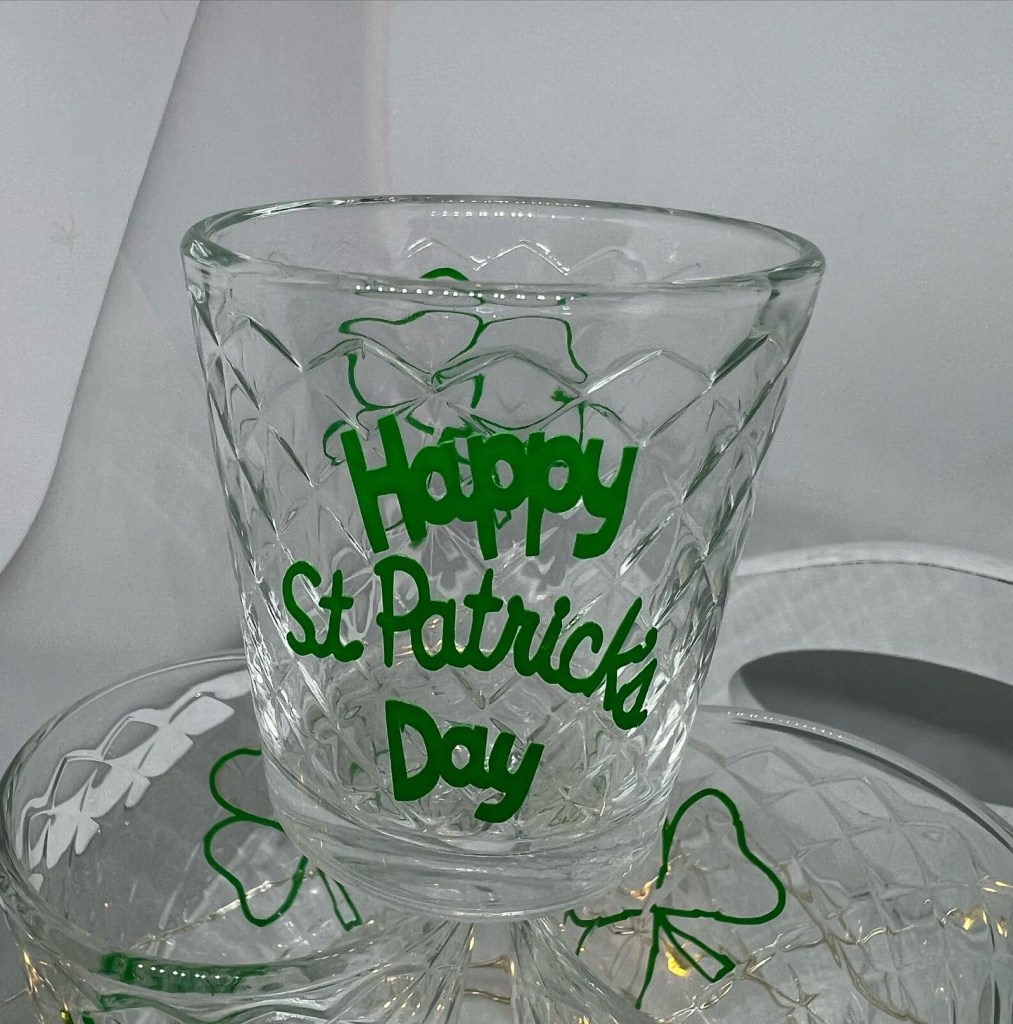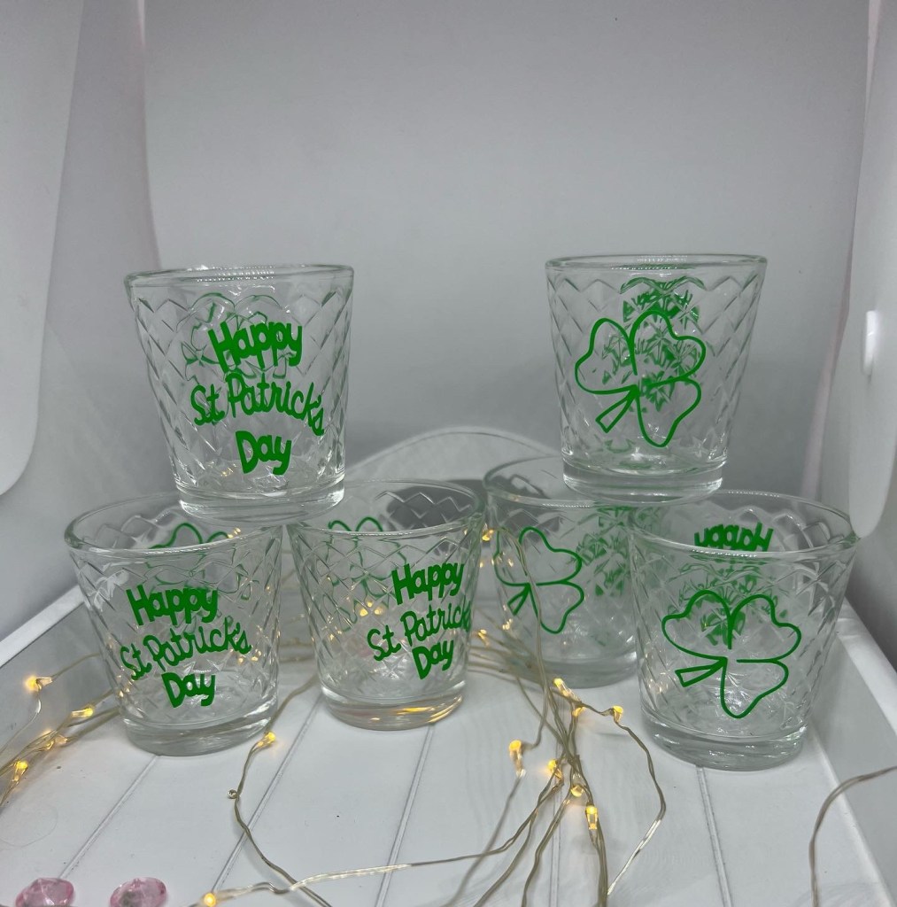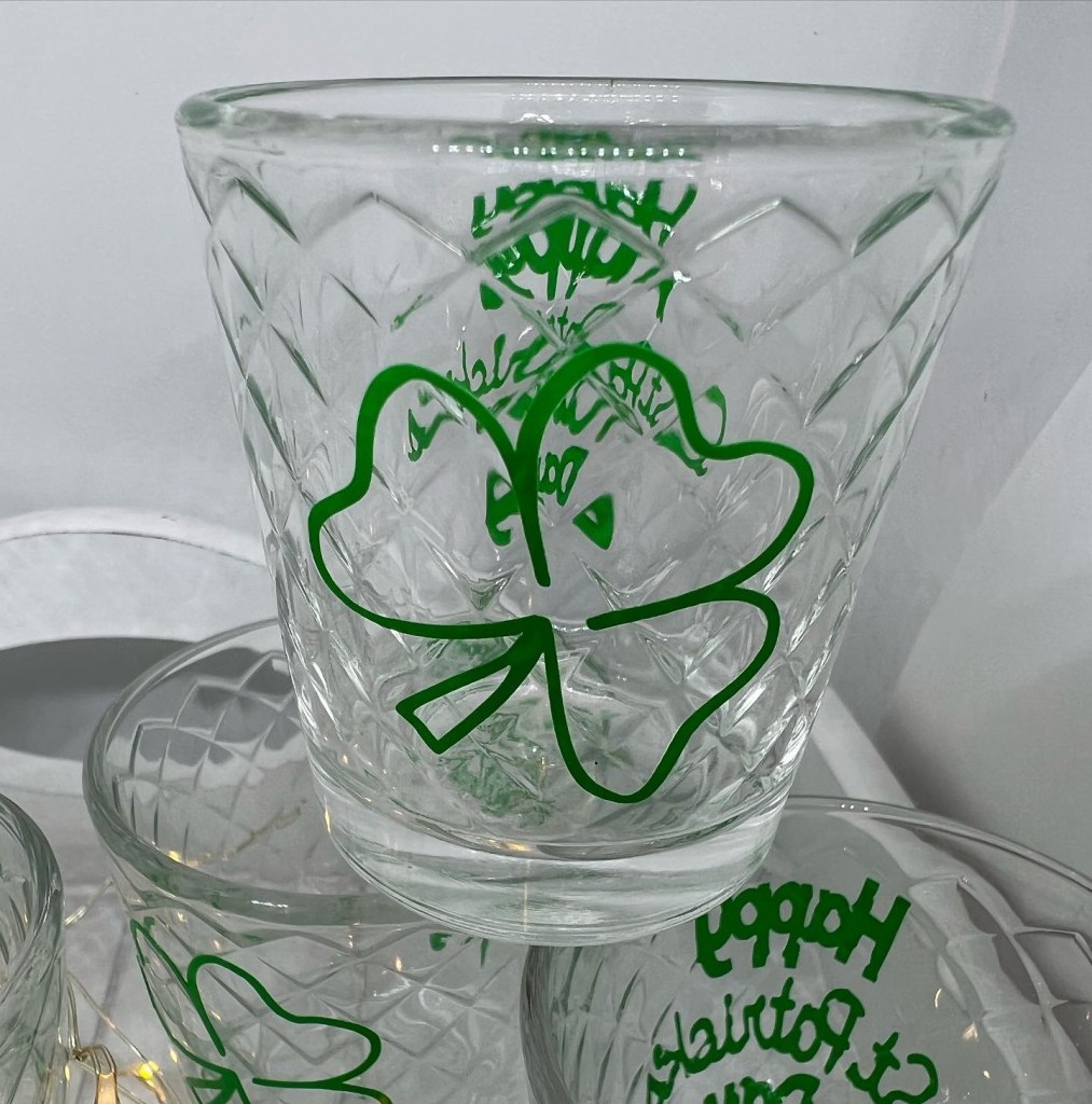 Each little glass has the greeting ‘Happy St Patrick’s Day’ on the front and a cute little shamrock on the back.